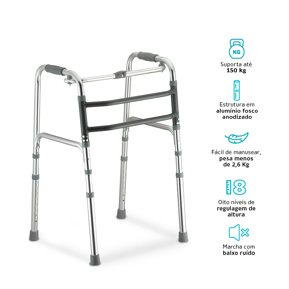 • Estrutura leve em alumínio e robusta com barra em aço carbono.