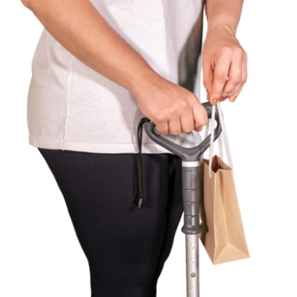 - Suporte prático para pendurar pequenas sacolas ou objetos leves quando for necessário liberar uma das mãos.