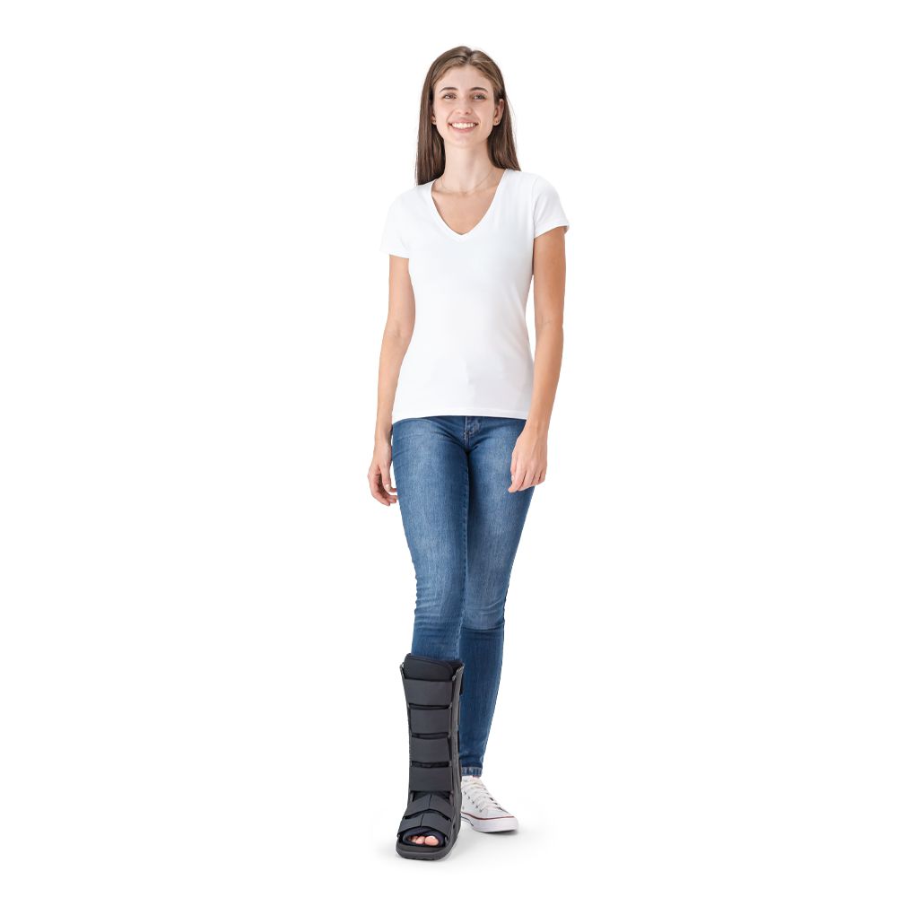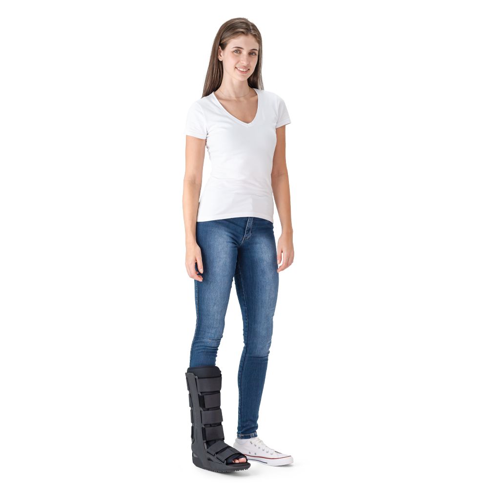 Indicação bota ortopédica longa– é a melhor opção para fraturas mais complexas e/ou mais distantes do tornozelo, como na região da perna, por exemplo.
